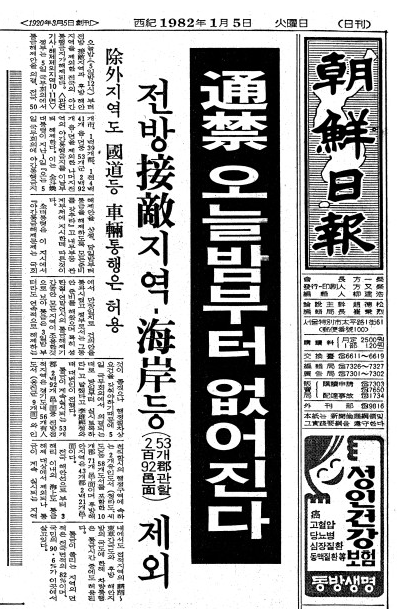 ↑ 조선일보 1982년 1월 5일자 1면
